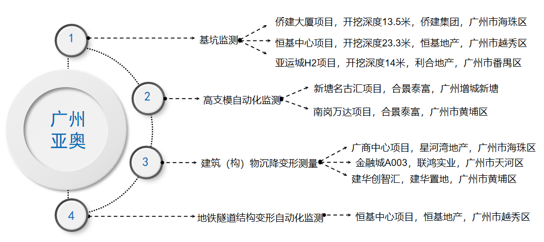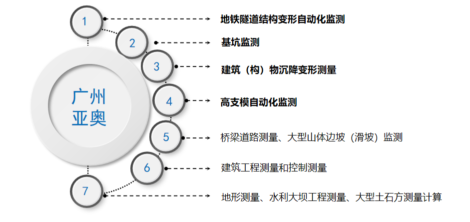 具體主要包括:基坑監測、建筑物主體沉降觀測、高大模板支撐系統自動監測、地鐵隧道結構和運營自動監測、水利大壩監測等主要經營業務,還包括邊坡變形監測、控制測量、數字化地形測量,水利工程測量、航空攝影測量、項目管理等相關業務。